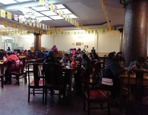 有三四种菜,都是蔬菜打在一起,虽然没有颜值,但口味真不错。为师傅点赞,合菜水平ok!就餐比较集中,有点吵,是各种朝拜团信男信女欢聚地,喜乐的情绪蔓延餐厅。