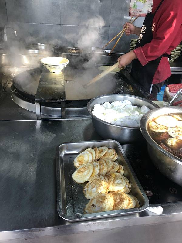 听说是清朝末年创办的,已经是第四代传人了。丸子汤是由绿豆皮、萝卜丸子为主材。杜记油馍加苏记丸子汤,感觉早饭吃油腻了,应该是油条配豆浆,丸子汤配烧饼才对路。没办法,远道来的,都想尝尝,果断省掉了中饭。