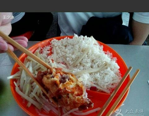 - ...食吧,一楼就是平常的饭菜,六七块就可以啦,二楼就有面啊,饭啊,炒面,炸鸡,三楼有特别的地方小吃