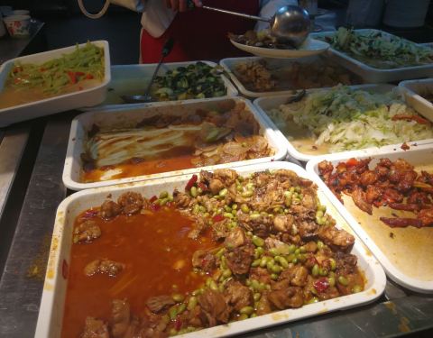 ...食吧,一楼就是平常的饭菜,六七块就可以啦,二楼就有面啊,饭啊,炒面,炸鸡,三楼有特别的地方小吃