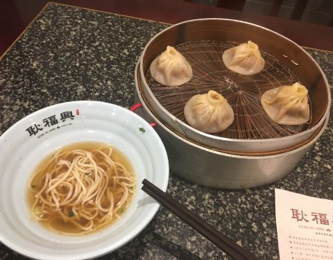“耿福兴”供应的小笼蟹黄汤包享有盛名。小笼蟹黄汤包使用螃蟹、鲜肉皮、五花肉、精白富强粉作原料,佐以白糖、酱油、葱花、姜末、细盐等配料制作而成。耿福兴小笼蟹黄汤包用料精细,制作考究。需经过制作皮汤、馅心、擀皮、掐制多种工序。 国庆期间排队等位花了半个小时,生意太好了。