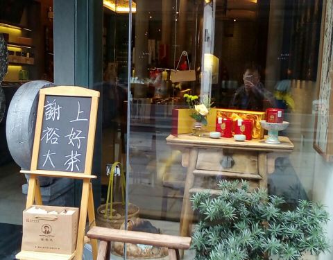 一家门面较大、装饰靓丽的商家,在屯溪老街上属于档次较高的,这里主要售卖各式当地特产,都是包装精美的礼盒装,有菌菇类、茶叶类等。