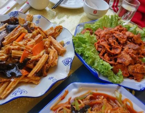口感不错,上菜挺快的。菜量很大,价格实惠,1饭店还有烤肉,不过孜然肉片挺像烤肉的就没要。的确实惠的一次体验。环境嘛就一般了,靠马路,在中心医院附近,有时去办事随便吃口。