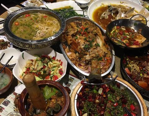 这个饭店现在提供适合当地口味的菜,不辣,不像以前全是辣的。