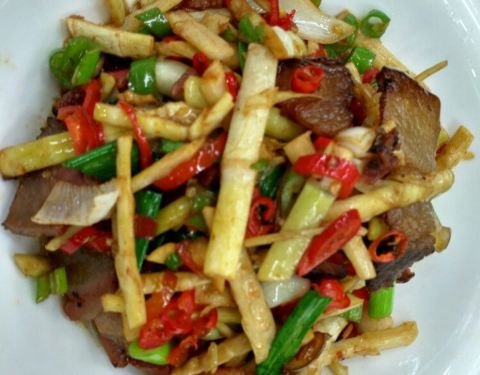 血鸭粑也好吃~。每天吃这家的蕨菜炒腊肉、山笋炒腊肉,都不会腻
