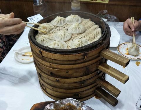 百年老店,灌汤包很有名,点了传统灌汤包、羊肉灌汤包、素菜包还有店里的另两个招牌菜:糖醋鲤鱼焙面、炒红薯羹。个人认为还是传统的灌汤包好吃!