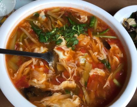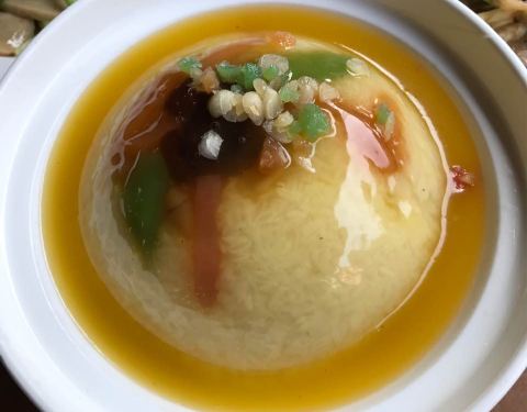 听了黄包车的推荐,去了山陕甘会馆右边40米路南的那家黄家灌汤包子店点了传统的灌汤包子和酸汤黄焖鱼,包子18元一笼、黄焖鱼38元。建议吃的时候整只包子一口吃下去,味道更佳(可以先咬破一点散散热,注意汤汁不要流出来,千万别烫着)。酸汤黄焖鱼有点像农村宴席(俗称吃大桌)的味道,汤酸酸的,大料比较多,里面有黄花菜、木耳和炸过的小黄鱼,火候刚刚好,黄花菜还很爽口,小黄鱼外糯里焦,更像家常菜。虽然挺好吃,但不惊艳。