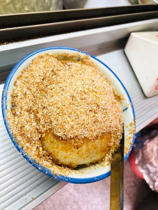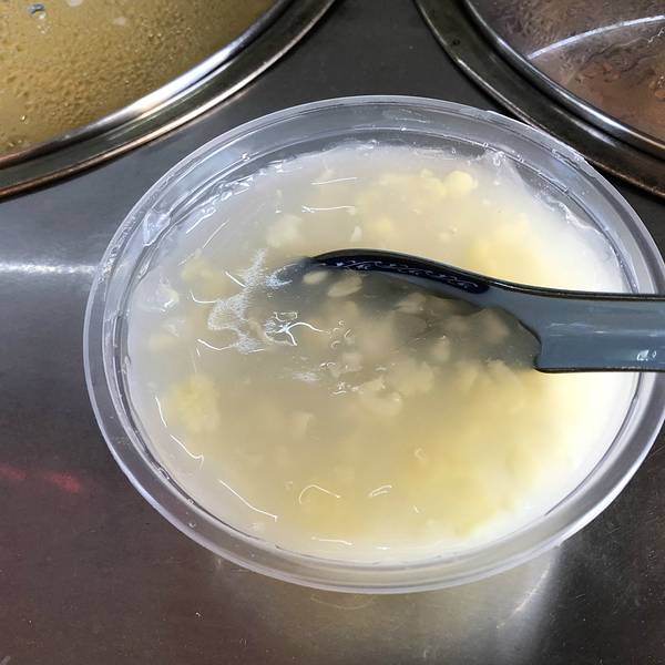 生意火爆,经常排起长龙,整碗豆花没有任何水分,从大锅里盛出来之后直接洒上糖粉,一碗豆花便完成了。另外还有西米露和龟苓膏,西米露无功无过,龟苓膏跟豆花一样黏稠度高,不苦,上面洒满了砂糖,清爽健康。