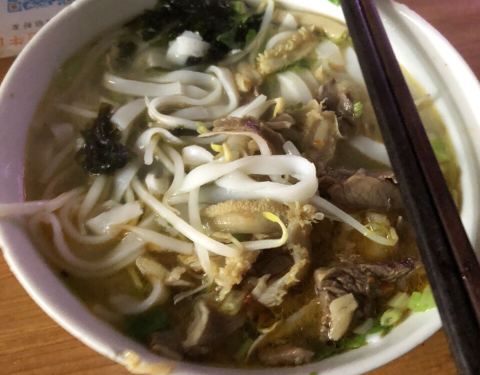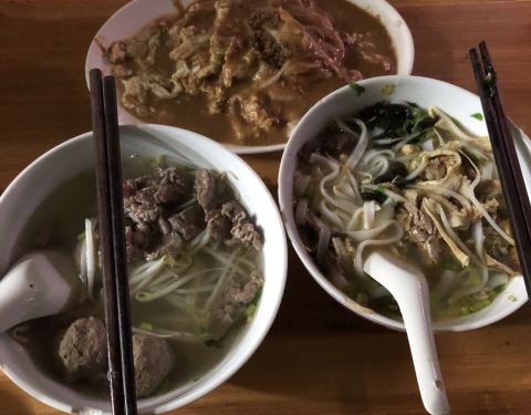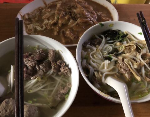 市场旁边,很多本地人光顾,叫了肠粉、牛杂粿条、牛肉牛肉丸汤,肠粉用的是沙茶酱汁,比较特别,但肠粉蒸的有点湿,口感偏软。三个一共45元,比较划算,总体值得推荐,最深刻的是店里3个员工都会说广州话