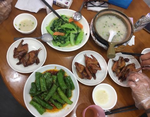 餐厅面积不大,有点不好找。惊喜的是食物的价格,招牌红烧乳鸽19块8,煲仔饭14,蛊汤13,我们一家就花80食饱。看菜牌上的价格以为是八十年代的。难怪中山人说这餐厅"实在"。但不要以为便宜味道就不好,过了中午饭点也没什么空位,论食物的味道当然不能和大酒楼来比,毕竟餐厅主打街坊口味,而且现在卖煲仔饭的餐厅也越来越少了,我看到很多当地人还点"碟头饭"吃,可能天气热,吃煲仔饭其实还是在冬天吃比较有风味,而且天气越冷越好,有机会,来试试!