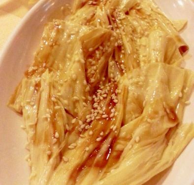 除了堂吃,这里也有很多中山的特产特色食物可以打包回家品尝的。新鲜的家乡粽,但价钱感觉稍微有点贵。 “石岐佬”的一大特色,是分布在店门口和走廊两边的明火摊位。大煎堆、菠萝包、农家卤大肠、上汤鱼包等等数十种中山传统美食现做现卖。真是看到目不暇给,每样美食都想品尝。 简单的菜牌就有数十种的选择,由于我们只有3个女仔,食量有限,因此只能点了一些招牌推荐的食品。 听闻石岐佬的顶级靓乳鸽远近驰名,这是因为他自家设了鸽场,所以从养、拣、挡、腌、炸都能亲自主理,仲有秘制的技巧烹制。 乳鸽的做法有很多,石岐佬采用的方法是红烧,上来的乳鸽色泽金黄,单单看表面就知道皮脆,但乳鸽看上去比较瘦削,砍件切开两边,如果能提供一次性手套手撕来吃会更加有风味。 乳鸽新鲜出炉必须要趁热吃,首先先解决它的翅膀部位,一口咬下去外皮和骨都很酥脆,就连乳鸽翅膀的小骨也能咬碎,肉质较嫩滑,肉汁也很丰富。比较可惜的就是乳鸽太小,较为营养不良,还未能真真正正品尝,就已经吃完了....相信如果乳鸽稍微能再大只少少,肉质和肉汁会更加好。 脆肉鲩也是中山的一个特色食品,肉质结实、清爽、脆口而得名。看见菜牌有,于是就点了 姜葱炒脆鲩腩。上来的时候有点失望,碟头不大,姜葱较多,味较浓,另外朋友觉得脆鲩腩还是不够爽脆。 香麻鲜腐皮,腐皮是看见门口新鲜制作所以叫上一碟来试试,这是凉拌的做法,新鲜煮好的腐皮淋上麻油和晒上芝麻。味道尚可,没有什么惊喜。 同伴点的紫苏骨,也是这里推荐菜之一,同样份量也不是很大,紫苏味不是很浓,味道有点偏咸了。