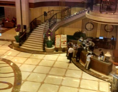 江门最早的也是当时最好的唯一五星级酒店,地处市中心,正对东湖公园,环境优美,旁边潮江路为较早的江门食街,各色食肆沿路开锣,方便至极!!因为历史略远,连电梯都很特别,唯此独有;过道有些年份印记,房间挺大的,突显当年五星标准,都是上档次的装修!!床铺整洁干净,窗明几净,远眺东湖秀色可餐;早餐也同样是高星标准,中西结合,种类繁多,愉悦安逸,难怪常年各类会议招待络绎不绝,倍受欢迎!!