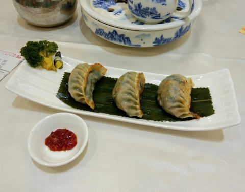 早茶的碗筷很油腻,俺们只能用茶水彻底手洗一遍方敢使用!收费却是毫不含糊绝对星级的,10%服务费,茶位最便宜5元,韭菜煎饺12元,小米糕12元,味道与份量尚可。结账37元。大厅环境有点老旧,而景观性更好的全落地玻璃的餐厅却仅作为住客用餐区,有点本末倒置了。