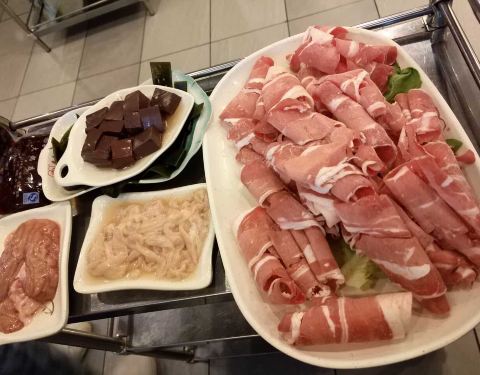 好吃,求打折,酱和汤底都超喜欢,唯一不好的地方就是酱料种类有点少,海鲜汁耗油和小辣椒都没有不开森,每碟东西都不是很多,求加量!(^з^)
