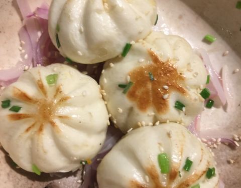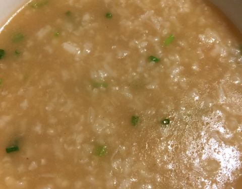 - 晚餐给孩子点的海鲜粥和半打生煎包。我觉得有点咸了,工作人员马上告诉我会反映一下,态度真的很好