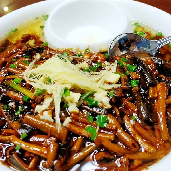 环境: 水乡的房子都是一小栋一小栋的,算是周庄古镇内比较大的一家饭店了,装修中规中矩,在水乡古镇的小房子里还能隔出包厢不错了。 进入十月,天气渐渐转凉,去周庄玩当然要吃周庄特色美食。周庄菜最有名的就要属万三蹄,另外响油鳝丝、三味圆鸡汤、阿婆菜、白丝鱼都是当地特色。听上去好多都是高热量的美食,不过秋季不是就应该补补么。 不爱吃饭的我还品尝了当地的特色面点——奥灶面,和菜一样,也是浓汤赤酱的红汤,面条特别细,味道还不错哦。