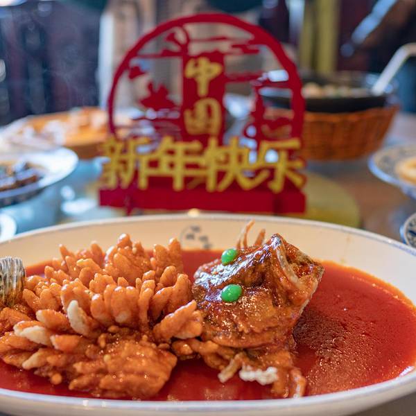 ...鱼的做法就是红烧,鱼头鱼尾做得翘起呈元宝状,其寓意是招财进宝,而且味道超赞,酸甜适口,肉质鲜嫩