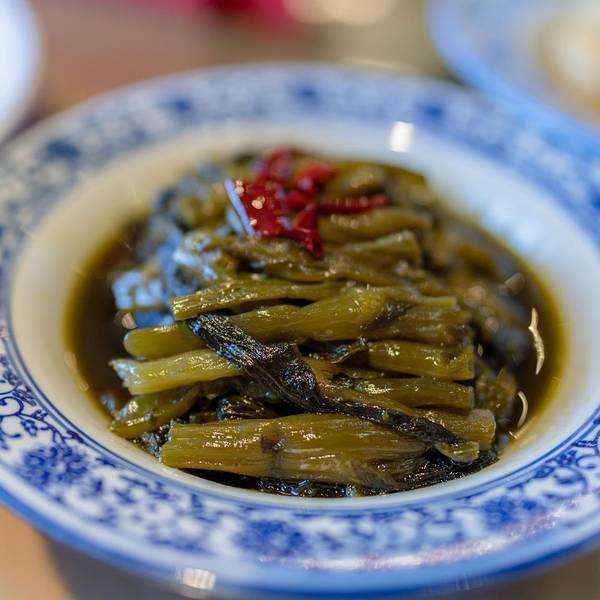 万三蹄是团圆的象征,逢年过节家里来客人了,一定会有这道菜,所谓“无蹄不成宴”“肥而不腻,酥而不烂”,它的做工相当考究,要经过几个小时的焖蒸煨煮,加上十几味原料,才形成了蹄色酱红,香气扑鼻,外形饱满的特点,味道超赞。三味圆,这个看似像鱼丸的丸子,其实是用面筋做成的,三味圆放在鸡汤内煮熟,皮薄馅嫩,味道鲜美。这飘香炸金砖究竟是一道什么菜呢?竟然是一盘炸豆腐,把豆腐干炸的酥脆金黄然后配上特制酱料,就因为这金黄的颜色,刚出锅超像金砖,所以取名叫飘香炸金砖红烧鳝筒,将新鲜的鳝鱼活宰后先洗净切段状,然后红烧后即可。田螺塞肉,平时很少吃螺类,今天终于没忍住,这道菜是要把田螺肉挖出来,然后加入猪腿肉剁碎剁细,再加上葱、姜、料酒等调料,最后再将其塞入田螺壳内进行烹饪。可谓餐两味,既有田螺的鲜又有猪肉的香,味美可口!这红烧桂鱼的做法就是红烧,鱼头鱼尾做得翘起呈元宝状,其寓意是招财进宝,而且味道超赞,酸甜适口,肉质鲜嫩。油卜塞肉,这是周庄的家常菜,将猪肉之精腿肉加调料剁细后与野菜一起塞入豆制品油卜中再烹饪。周庄人有一种创新精神,他们能把猪肉剁碎后塞到任何可能做成食物的东西里,于是又形成一道新菜。农家鳗鲤菜又叫周庄阿婆菜,别看这道简单的家常菜,却要精工数月的流程才可制成,采摘油菜的嫩苔用清水洗净,放在阳光下晒成半干,然后以小甏(bèng)腌制,甏口用箬(ruò)叶和黄泥密封,倒置在陶盆内,防止漏气,这些菜色中虽有一些已经很普通,进入了我们的家常菜系列。不过当加入了历史、文化元素后,它就变得不再普通,它不仅仅是一种食物,更是一种文化的传承。