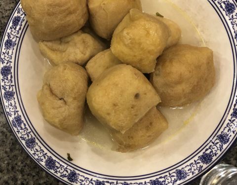 沈厅酒家算得上周庄知名的餐馆,就在沈厅附近。餐馆环境不错,菜品也较一般的餐馆略贵一些。我们在这里吃了一顿晚餐,点了红烧鲃鱼、银鱼炒蛋、盐水河虾、油卜塞肉、清炒青菜、春卷(吃掉一半才想起拍照),味道都还不错。鲃鱼是周庄的特色菜品,小小的鲃鱼38块一条(周庄似乎都是这个价格),红烧的味道不错,肉质细嫩。第一筷子就夹到鱼肚子里一块软软的东西,问是什么,师傅说是鲃鱼肺,最有营养的。这家店在大众点评也有优惠券。