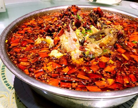 满满一盆的花椒红辣椒,味道真的不错,黄辣丁也是肉质肥而不腻,很鲜嫩,个头也比较大