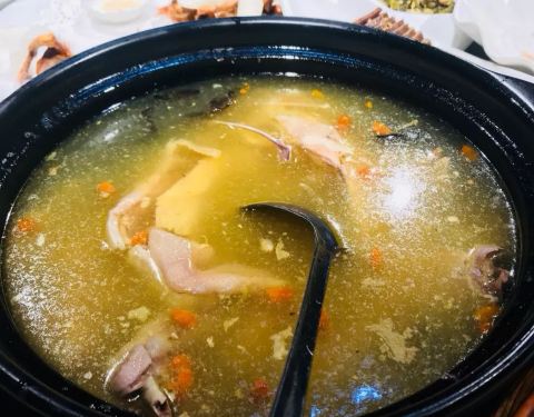 ...小亭子里吃饭打牌,那时绝佳的,点的菜都很好吃,材料新鲜,份量也足,特别是鸡汤,真的是草鸡,很香