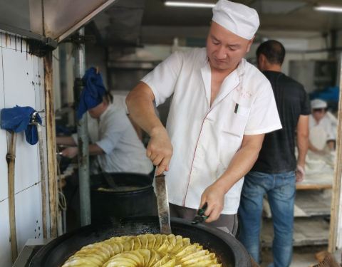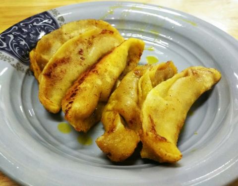 慕名前来品尝,牛肉锅贴果然好吃,一两五个七块钱,大概十厘米长,烙的金黄酥脆,肉馅汁水饱满,口号鲜嫩,回味无穷。店面所在应该是老城区吧(我猜),还不到饭点,店里人不多,不过来打包锅贴的人倒是不少,我坐下的时候听到某位打包了三斤,默默地算了一笔账……吃到一半来了一位大爷,点了好多,坐下来掏出一瓶二锅头,悠哉悠哉地吃起来,很有一种家常气息。偷偷放一张图,大爷不要怪我啊