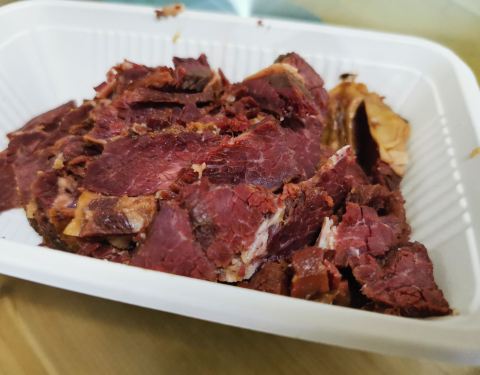牛杂粉丝汤,汤是荤汤,油亮暗红,美味无比,牛杂软糯入味,粉丝爽滑,完美。 熏牛肉,口感口味均上佳