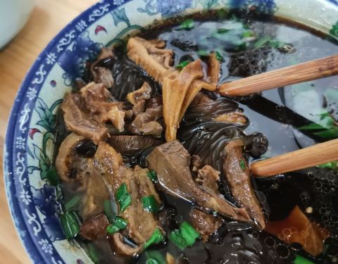 - 牛杂粉丝汤,汤是荤汤,油亮暗红,美味无比,牛杂软糯入味,粉丝爽滑,完美。 熏牛肉,口感口味均上佳