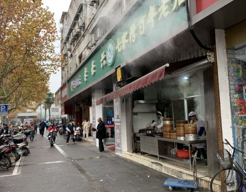【位置】 导航过去,位置准确,门口不能停车,旁边小街有划线收费车位。 【环境】 门脸极宽阔很显眼,老式店堂,看着就是很好吃的样子。 【服务】 门口买单,恁小票到各窗口自取。 做锅贴、煎包的大叔很幽默,熟练得边干活边跟等侯的客人侃大山。 【食物】 牛肉锅贴,我心目中的南京No.1,底酥脆,皮子又薄又软,牛肉馅多汁。 牛肉馄饨,锅贴的黄金搭档。 牛杂粉丝汤,汤是荤汤,油亮暗红,美味无比,牛杂软糯入味,粉丝爽滑,完美。 熏牛肉,口感口味均上佳。 【评价】 水准一直在线的老字号,每样食物都做得恰到好处,从不因为生意好就敷衍了事,一段时间不去就会想念的馆子。