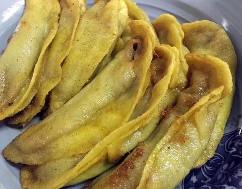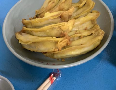 ...牛肉锅贴果然好吃,一两五个七块钱,大概十厘米长,烙的金黄酥脆,肉馅汁水饱满,口号鲜嫩,回味无穷