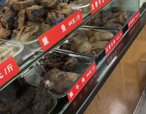 清真李荣兴以前曾来过许多次,近一两年来的较少,其位置在南湖东路27号,这家店是响当当的老字号,这家店其实面积不大的,但品种还是较多的。面条馄饨之类是在一个窗口取,而锅贴则在另一个窗口。另外还是各种包子、粉丝汤之类的。卤菜的柜台也在店里,按我规常的吃法,如果人多的话,除了点上面条、馄饨以外,还会切点卤菜,比如牛肉、牛肚之类的,这样似乎更过瘾些。