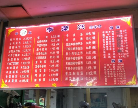 清真李荣兴以前曾来过许多次,近一两年来的较少,其位置在南湖东路27号,这家店是响当当的老字号,这家店其实面积不大的,但品种还是较多的。面条馄饨之类是在一个窗口取,而锅贴则在另一个窗口。另外还是各种包...清真李荣兴以前曾来过许多次,近一两年来的较少,其位置在南湖东路27号,这家店是响当当的老字号,这家店其实面积不大的,但品种还是较多的。面条馄饨之类是在一个窗口取,而锅贴则在另一个窗口。另外还是各种包子、粉丝汤之类的。卤菜的柜台也在店里,按我规常的吃法,如果人多的话,除了点上面条、馄饨以外,还会切点卤菜,比如牛肉、牛肚之类的,这样似乎更过瘾些。