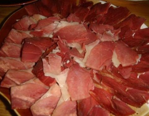 云南省著名特产之一,素以风味独特而与浙江金华火腿、江西安福火腿齐名媲美,蜚声中外。宣威火腿,因产于云南宣威而得名。它的主要特点是:形似琵琶,只大骨小,皮薄肉厚肥瘦适中;切开断面,香气浓郁,色泽鲜艳,瘦肉呈鲜红色或玫瑰色,肥肉呈乳白色,骨头略显桃红,似血气尚在滋润。其品质优良,足以代表云南火腿,故常称“云腿”!