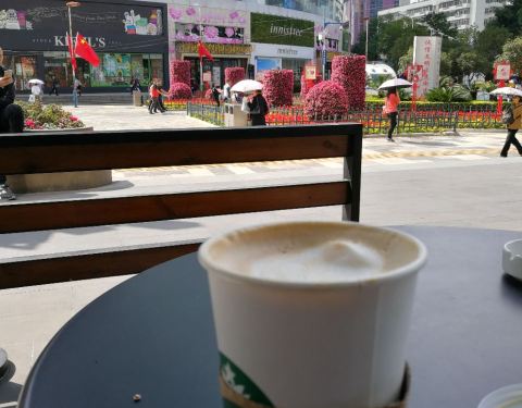 难得遇到这家星巴克人不多的时候,室内外都有空位选择。正好尝尝新出的啤酒风味拿铁,要了热饮,刚开盖立刻能闻到一股啤酒的香味,入口也确实有点咖啡融合啤酒的感觉,不过多喝几口感觉就渐渐平淡了,回归了普通拿铁的本色,不过这款是没有酒精的,啤酒只是噱头。最近还出了棉花糖和麦芽咖啡拿铁,打算这几天都试一次。当季特饮都比较贵,图个新鲜,性价比是不存在的。