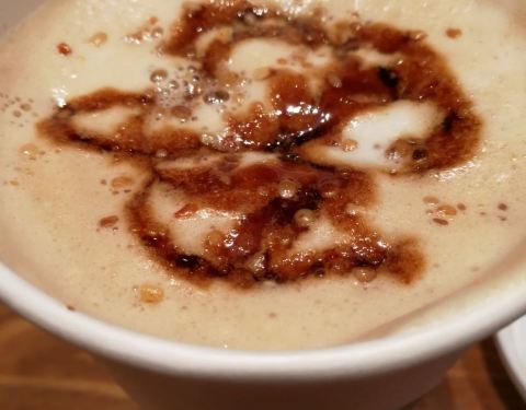 这一季的星爸爸新品应该给个赞,之前喝了金桂樱桃摩卡,没过两天又想喝了。这点了坚果拿铁和金桂樱桃摩卡,相比较而言坚果拿铁的口感更浓郁,摩卡的桂花香又很有特色,两种口味都不错。因为是季节性新品,过段时间应该就下线了,过两天有空再去刷两杯吧。另外这家服务员态度不错,赞一个!