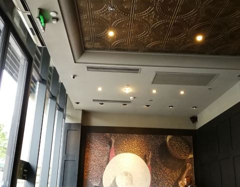 餐厅装饰新潮美观,座位宽敞舒适,用餐环境一流,收银员好客热情,各种咖啡饮品都是现场研磨制作,醇香浓郁,味道可口,还有多款西式糕点、色拉供客人选用。