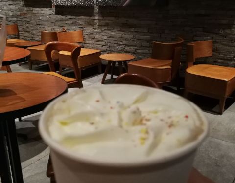 在附近吃完晚饭,顺便到星巴克小坐一下,最近有两杯优惠套餐券,原价80两杯的新年特饮才59,感觉划算很多。可能是这一季的新品快结束了,三款任选也只有两款了。难得这个店晚上人不多,出品比较快,环境也不嘈杂...