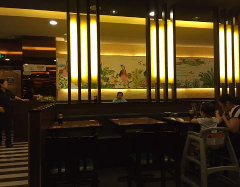 该餐厅布置的挺有格调,大厅虽然不是很大,但布置的很干净,很整洁。桌椅摆放的很整齐,桌上的餐具摆放也很整齐,给人的感觉就很清爽,所以看上去也很宽敞。灯光很明亮,食客在里面吃饭很舒适,很自在的。餐厅环境优美雅致,装修的很精致,大厅布置很有格调,昏暗的灯光,店面虽不大,但是装修的很有风格的,餐厅的服务热情周到,服务员个个训练有素,动作非常的敏捷,服务很贴心,厅内的装修也很不错,精致脱俗 环境还行,店堂干净明亮