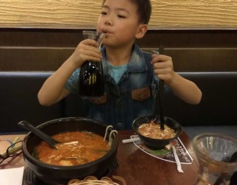 己经记不清是第几次吃阿香了,儿子非常爱吃!你们看他吃的多香啊!