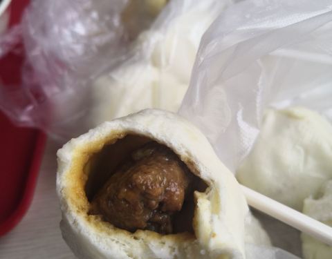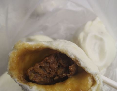 特地买点尝尝。最好吃茴香肉的,茴香很少,肉居多。都十二点半了,竟然还排大长队。肉丸的,其实是大葱肉的