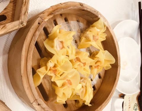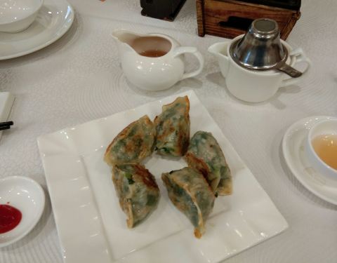 番禺宾馆品早茶――还是贪图高级惹得祸!多次路过该老牌四星,曾发誓必光临一次,终实现梦想!可也付出了沉重代价!两人一盅三件吃出86元天价!等于普通茶楼3倍!味道却平常。韭菜煎饺19元、香茜瑶柱蒸饺19元、蚝油竹笙卷20元,最便宜茶位10元,服务费10%。