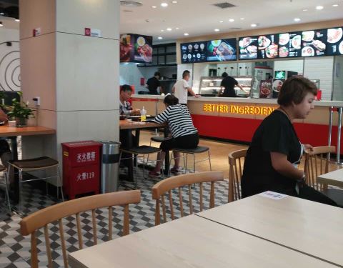 该餐厅位于新城区长乐西路180号炫彩商城2楼康复路口,是一家连锁店,主要经营快餐,也算新开的店吧,没想到是方知九品香的店呀~五爱那边的那家店比较熟~喜欢里面的装修,就是封闭的太好没信号~菜的味道中规中矩吧,人多聚餐也都是热闹了,没吃多少,就觉得环境挺好的。性价比“相当高”的中式快餐,品种“很丰富”,量也“足”,都“值得试试”。宫保鸡丁饭“常点”,鸡肉味道“不错”,饭和汤还可以“免费续加”。整体店面“干净、卫生”,是上班族解决午餐的“佳地”。