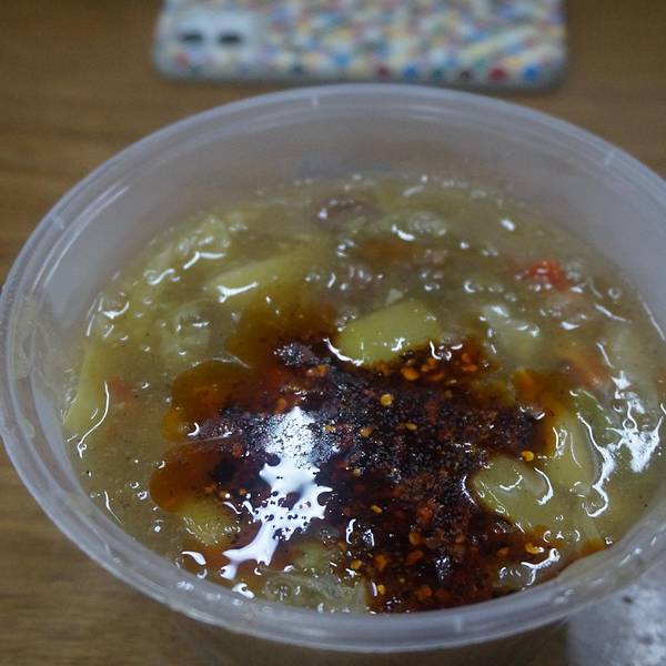 李唯一肉丸胡辣汤:(肉丸胡辣汤)8元 第二站何乖乖同学很拒绝这个看上去像鼻涕一样的东西,我硬着头皮尝了两口以后居然觉得还不错,里面有土豆、红萝卜、胡椒粉、肉丸还有些其他配菜,第一口尝上去有点像咖喱,...