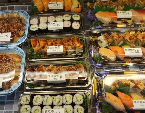 在海光寺家乐福里一层肯德基对面就是,门口是冰箱有装好的各种寿司盒子,还有小菜和饮料,就是现在这个季节吃的话会有点冷,夏天的话还是很喜欢吃的