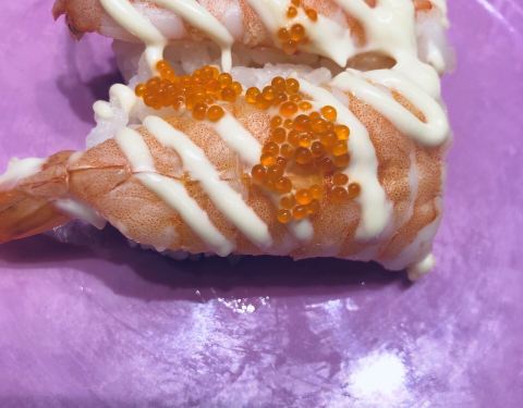 争鲜回转寿司,是一家全国连锁的日本料理店,食材新鲜,味道也很正宗。 三文鱼寿司,是所有的寿司中很受欢迎的一种,因为味道好深受食客喜爱;它的做法简单,把三文鱼改刀切成片后放在饭团上就行了,三文鱼味道鲜美,饭团里有淡淡的酸味,非常不错。芒果布丁,它的卖相精致,白白的饭团和虾肉带上虾外皮的黄色,很漂亮;虾肉肉质紧实,味道咸鲜适中,配上米饭的清香,味道很好,值得一试。 餐厅的环境还不错,干净、大方,里面有一个料理台,想吃就可以在里面拿,大厅除了一些小台外还有卡座,两个人在里面吃吃料理还是很不错的。