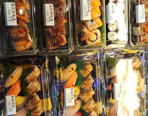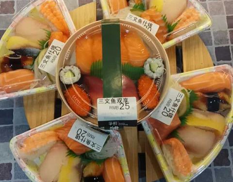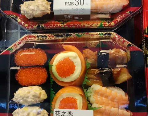 - ...箱有装好的各种寿司盒子,还有小菜和饮料,就是现在这个季节吃的话会有点冷,夏天的话还是很喜欢吃的