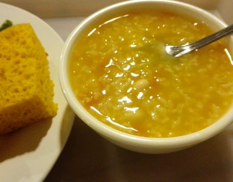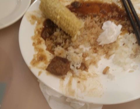 全部吃光,单位楼下的食堂,要的汤,玉米,还有饭饭。好吃不贵。还买了饼干