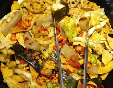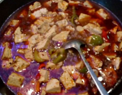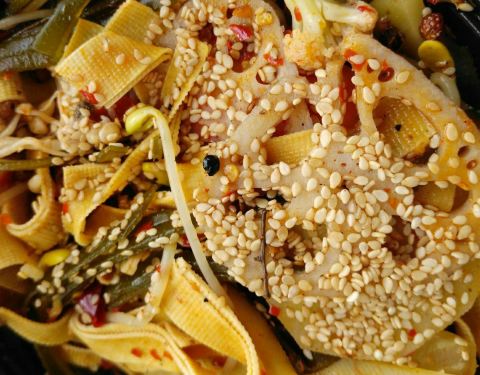 - 炝锅里面加上魔芋,加上腐竹,还有菜花,豆皮儿,土豆片等等也都很好吃。【口味】炝锅的量还是比较大的