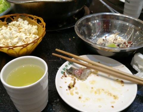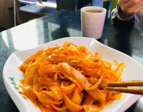 - 八宝茶,放了糖,微甜,解腻。麻酱凉皮,用红油的麻酱,味道不错