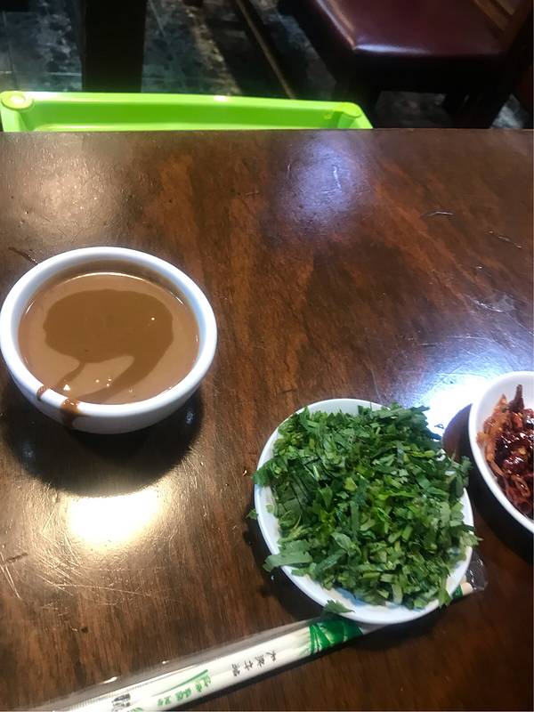这是一家清真类的火锅店,地点就在风荷园西湖道深蓝公寓一带,属于大铜锅类的火锅,是我的最爱,这次是朋友带着来的,远远就看到这家的招牌,绿色的牌匾非常吸引人注意,非常显眼,内部面积虽然不大,但是打扫的非常干净,就餐环境很满意,大铜锅开锅就开始下肉了,我们要的手切羊肉,这种肉不是冷冻肉,是新鲜的,现切的,这样的肉口感要更好一些,虽然比起冷冻的小贵吧。稍微涮一下就吃,不然就老了,羊肉味道很浓,很棒,鱼丸虾丸什么的不推荐,都是冷冻的,可以吃点冻豆腐,油豆皮,宽粉一系列的,小料稍微有些单一,只有麻酱料,但是羊肉味道确实不错,还是很值的。服务方面,态度还行,比起一些老牌的大铜锅涮羊肉态度要好。